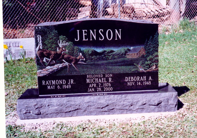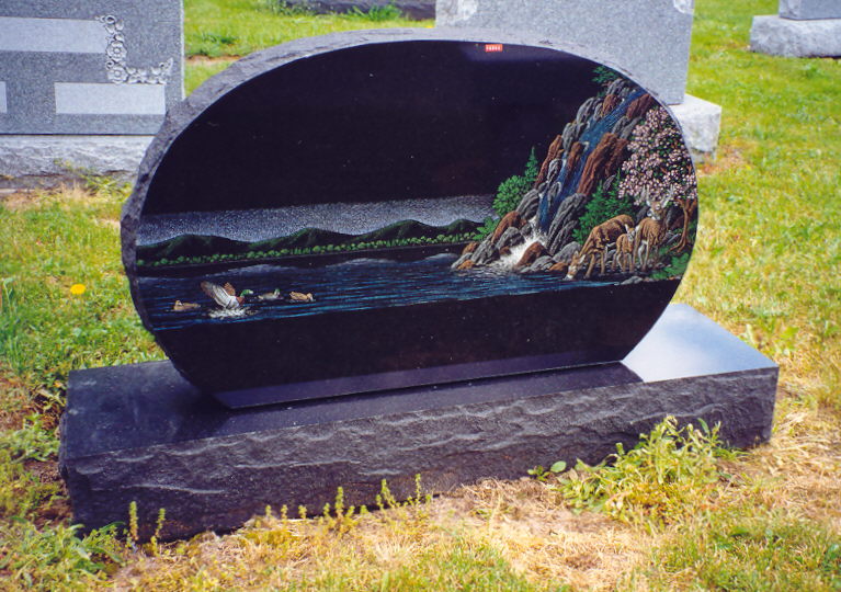 Jet Black Granite with a colored etching. There are many etchings to choose from or you can add your own picture.